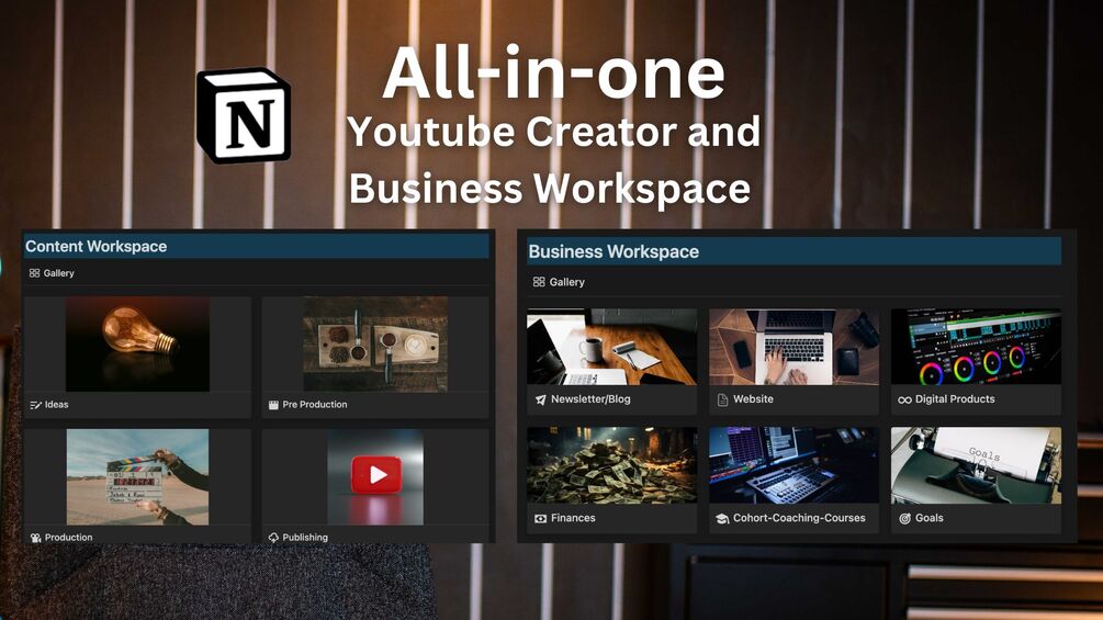 - YouTube Video Template: Built into the production stages, this template includes everything you need to capture thumbnail inspiration, compare title ideas, and dedicated pages for scripting and shot lists.